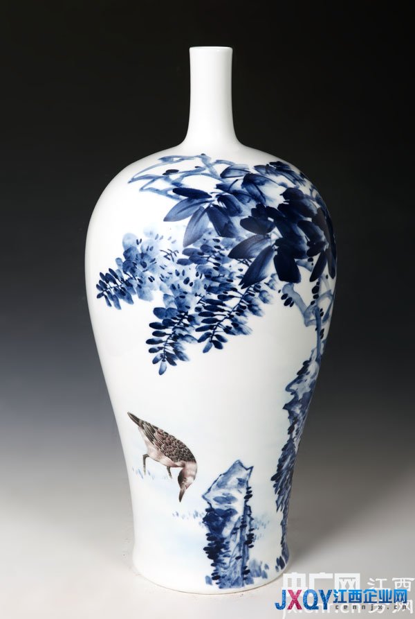 几年前,他最有代表性的艺术创作还要属写意青花,洪南雨用自己独特的陶瓷艺术语言,形象的表现自己的思想意识和审美感受。从2004年开始,他专攻写意青花,他笔下的写意青花花鸟不只是简单的形式摹写,而是涵映世界广大精微于胸的精神抒发。没有浮躁,没有刻意,他凭借宁静的心襟,去发现天地间深沉的意境。